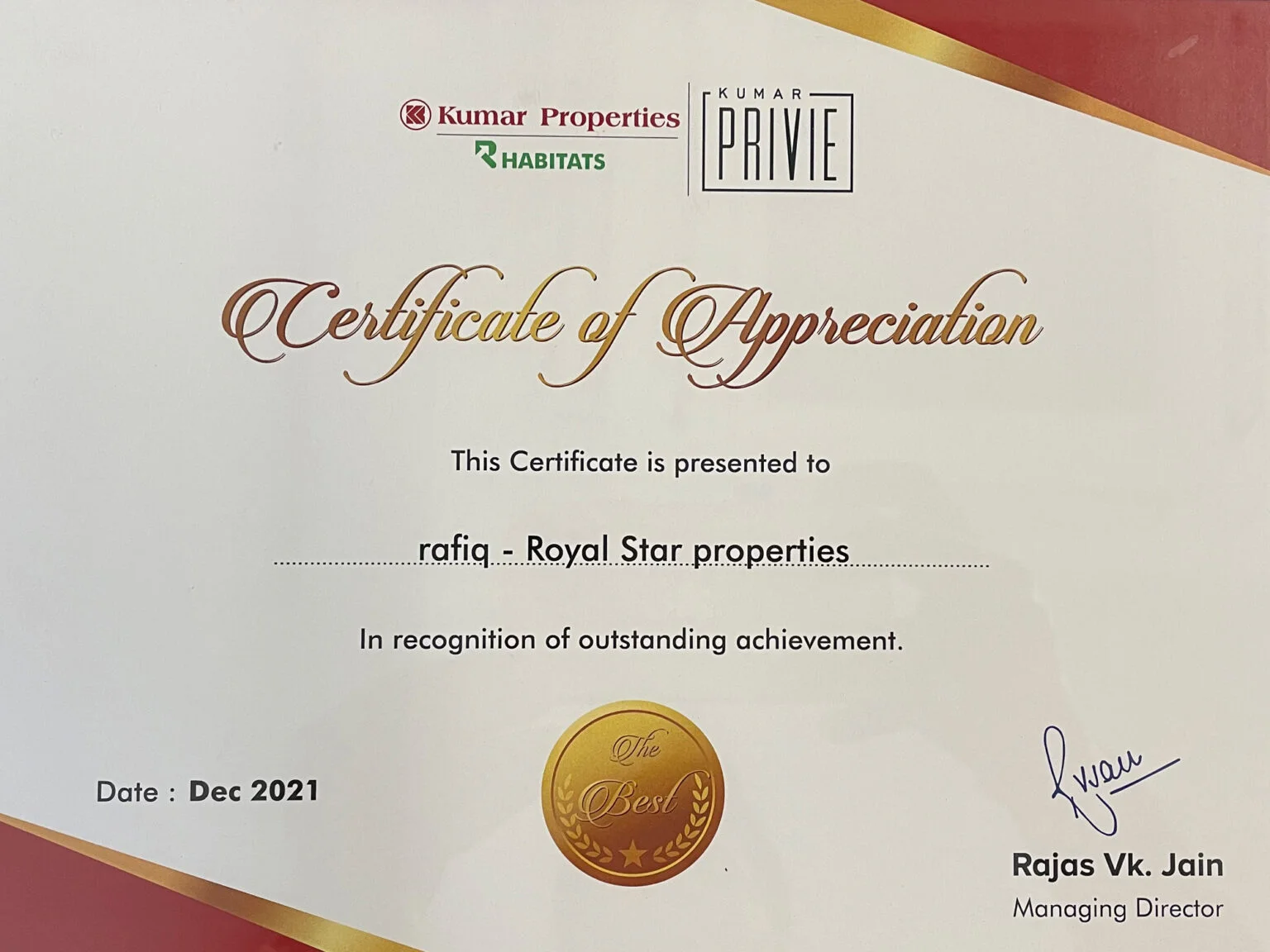 At Royal Star Properties, our commitment to professionalism, integrity, and client satisfaction has earned us recognition across the real estate industry. These accolades reflect our dedication to setting benchmarks in service and success.
